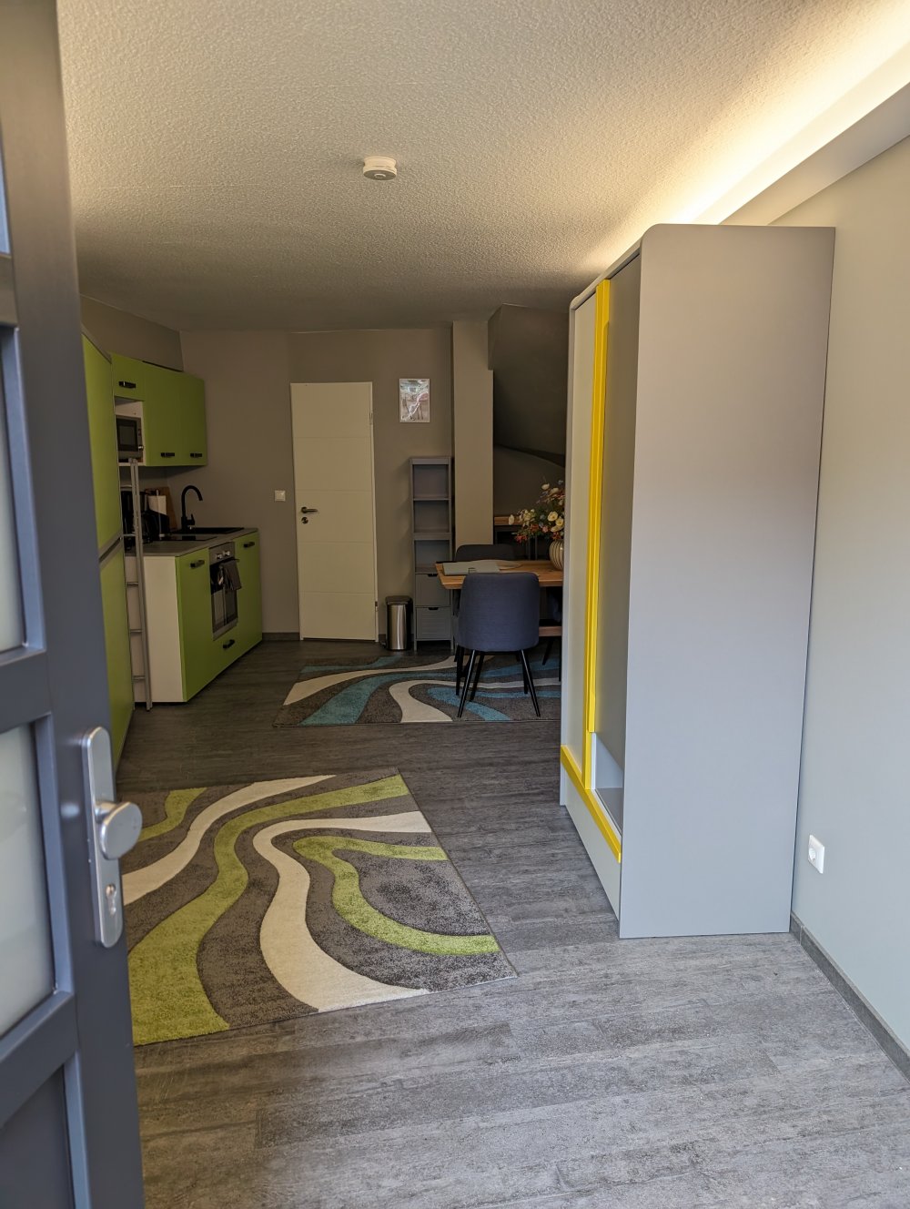 In den 3 oberen Etagen befindet sich je eine Ferienwohnung mit 2 Räumen. Diese sind zwar klein aber liebevoll eingerichtet mit allem was das Urlauberherz begehrt. Schlaf- und Wohnzimmer / Küchenzeile / modernes Bad / WLAN / Smart-TV / Musikanlage.