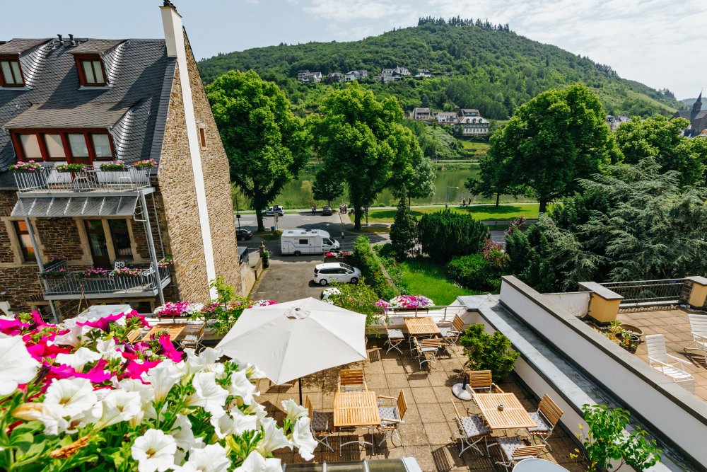 unserem kleinen aber feinen Hotel Garni in einer schönen Gründerzeitvilla in Cochem an der Mosel. Nicht weit von der Innenstadt können Sie auf unserer Sonnenterrasse am Moselufer entspannen und neben der Flusslandschaft auch den weltbekannten Moselwein genießen.
