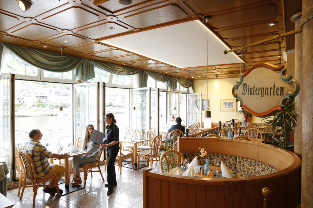 Lassen Sie sich kulinarisch verwöhnen und beobachten Sie die Schiffe vor dem Fenster auf der Mosel. Oder verkosten Sie ein gutes Glas Wein während Sie den Blick über das satte Grün der Weinberge schweifen lassen.